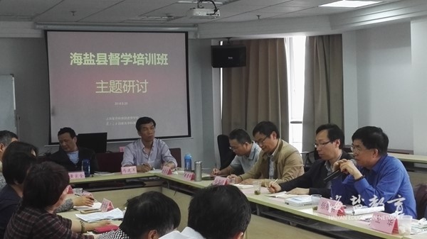 二是研讨交流。培训的第二站来到了复旦科技园进修学院,举行“如何做好督学”主题研讨,上海市区教育督导室相关领导、上海教育出版社编辑、复旦科技园进修学院培训中心主任和学员们进行研讨交流。在各位专家进行了简短的主旨发言后,学员们踊跃提问,专家认真答疑。海盐县教育局督导科陈国明科长也向四位专家介绍了海盐开展责任督学的总体情况。整个研讨交流的过程体现了很好的互动性和很强的针对性,进一步提升了全体学员对“如何做好督学”的理解与感悟。