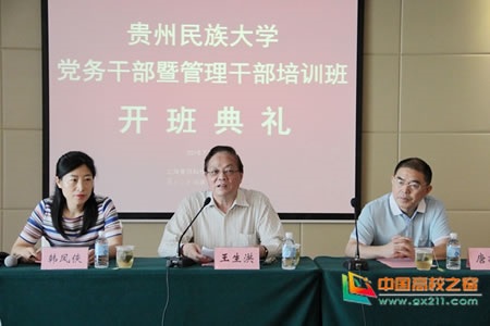 7月24日上午,贵州民族大学党务干部暨管理干部培训班在复旦大学国家科技园学院正式开班上课。复旦大学原校长王生洪教授,贵州民族大学党委副书记唐建荣教授,复旦大学科技园培训部主任韩凤侠出席开班仪式,贵州民族大学46名参训处级干部参加。