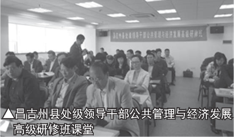 紧紧围绕在全疆实现“三个率先”目标要求,今年10月下旬,我州把组织培训需求与干部培训需求相结合,首次在复旦科技园进修学院举办了50名县级领导干部参加的经济管理高级研修班。在为期一个月的学习中,复旦等院校、机构的25位专家教授针对昌吉州国民经济和社会发展第十二个五年规划纲要和州第十次党代会报告,围绕“看现象、做比较、找原因、出主意”的原则进行授课,使参训干部知道“怎么办、怎么干”,迅速学以致用,快速有效体现。在培训过程中,参训干部结合昌吉州发展战略和中心工作,与专家进行了深度交流,探讨了一系列合作意向。
